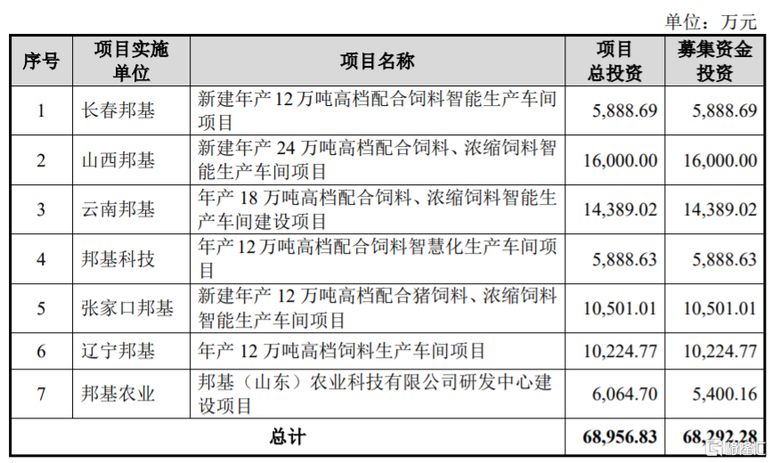 本次IPO拟募资用于新建年产12万吨高档配合饲料智能生产车间项目、新建年产24万吨高档配合饲料、浓缩饲料智能生产车间项目、年产18万吨高档配合饲料、浓缩饲料智能生产车间建设项目等。