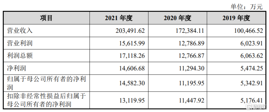 2019-2021年,邦基科技实现营收分别约10.05亿元、17.24亿元、20.35亿元,归母净利润分别为5342.91万元、1.12亿元、1.46亿元,呈增长趋势。