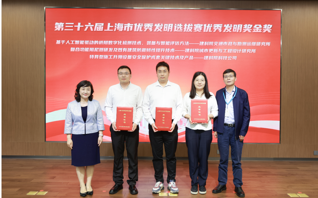 集团副总裁江燕、集团总工程师周红波为荣获第三十六届上海市优秀发明选拔赛优秀发明金奖的3个团队颁奖。