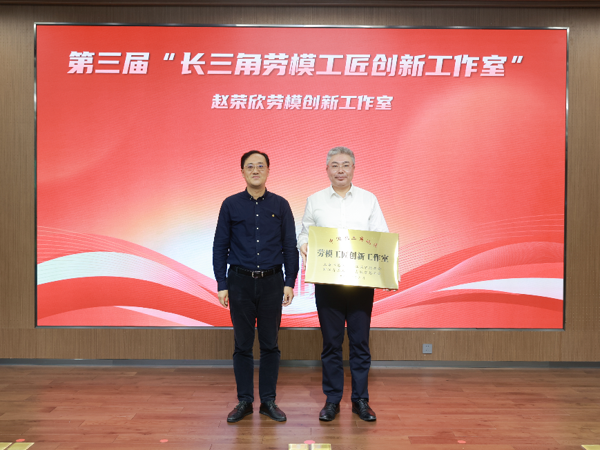 王昊为被授予长三角劳模工匠创新工作室的赵荣欣劳模创新工作室授牌。