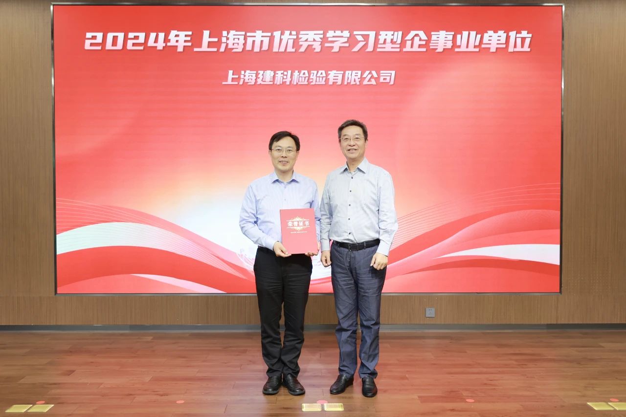 集团党委副书记、总裁夏冰为荣获2024年上海市优秀学习型企事业单位的检验公司颁奖,并为2025年“建科工匠”授牌并颁发证书。
