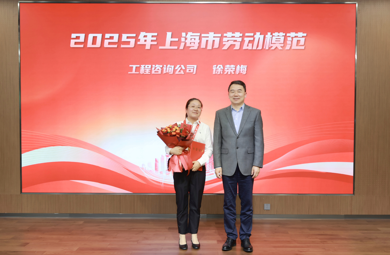 王吉杰为2025年上海市劳动模范徐荣梅颁奖,并为集团徐荣梅机场数字化工程劳模创新工作室授牌。