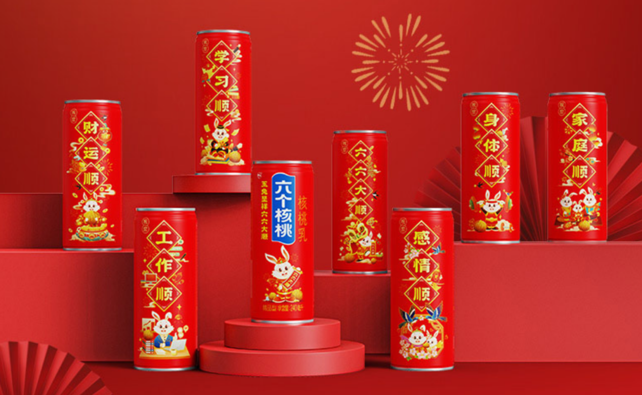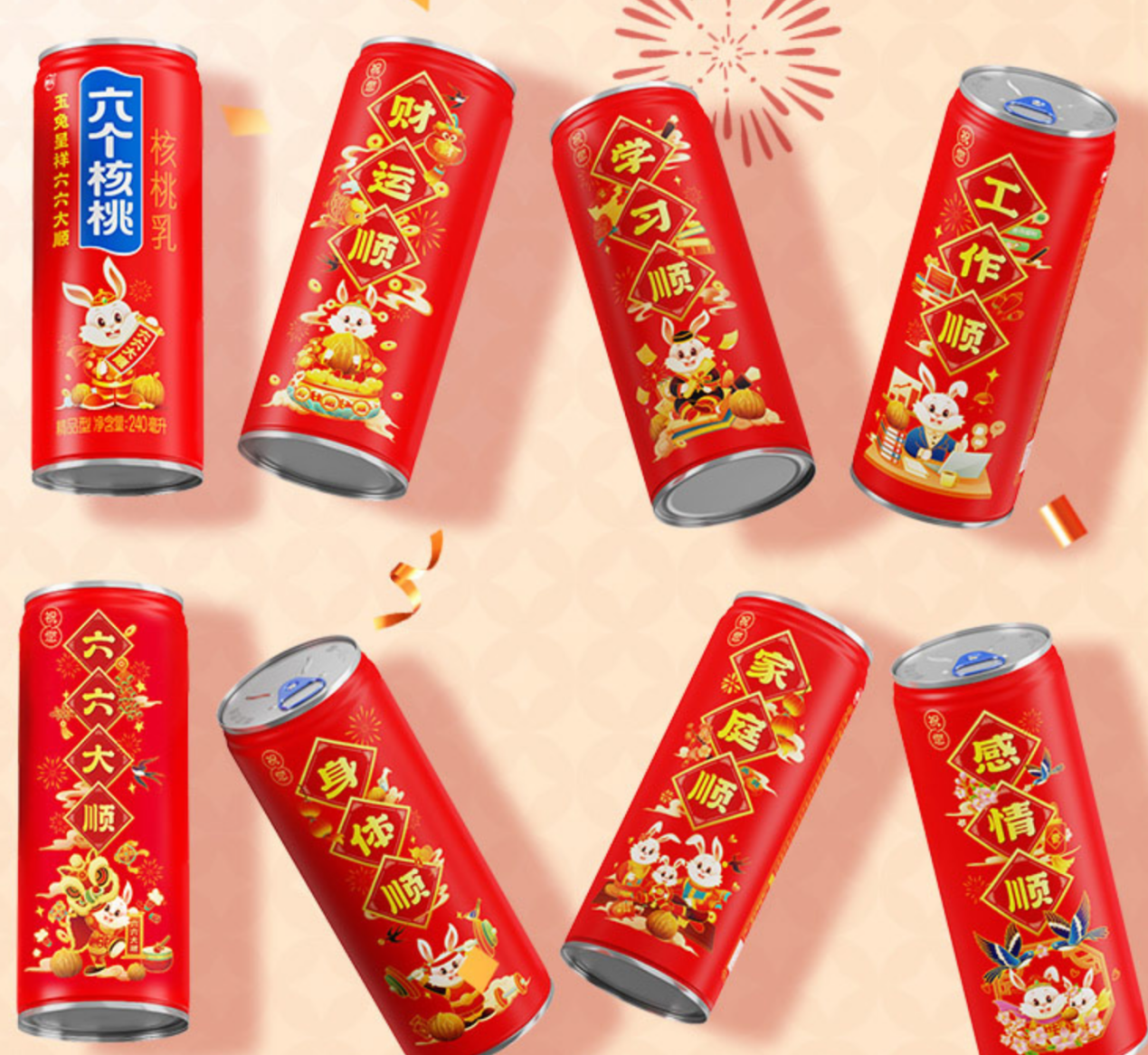 此次兔年贺岁罐依托日常生活中常见的6个场景,打造六款罐体设计,表达了“学习顺、工作顺、财运顺、家庭顺、感情顺和身体顺”六大春节祝福,向全社会传递六个核桃对兔年的美好祝愿。值得一提的是,每个罐体还专门设计了正面下方的兔子和前方的“六六大顺”四字条幅作为固定形象,传递六个核桃兔年吉祥,六六大顺的虔诚祝福。