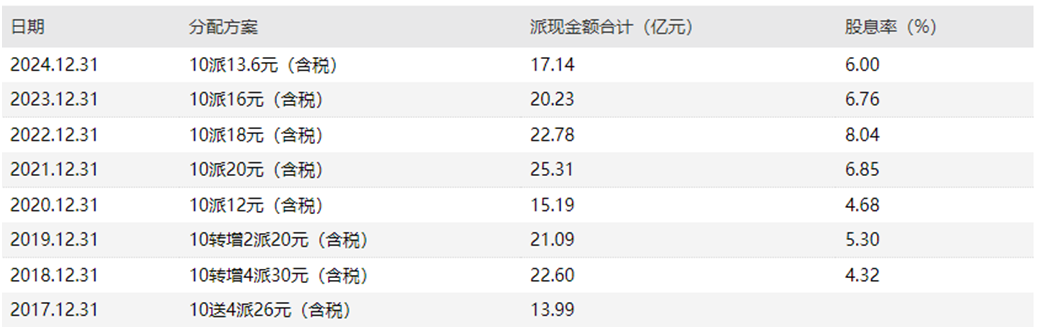 在分红政策上,养元饮品展现出截然不同的“慷慨”风格。4月25日养元饮品发布2024年度分配预案,拟10派13.6元(含税),预计派现金额合计为17.14亿元。派现额占净利润比例为99.53%,以该股2024年度成交均价计算,股息率为6.00%。这是公司上市以来,累计第8次派现。