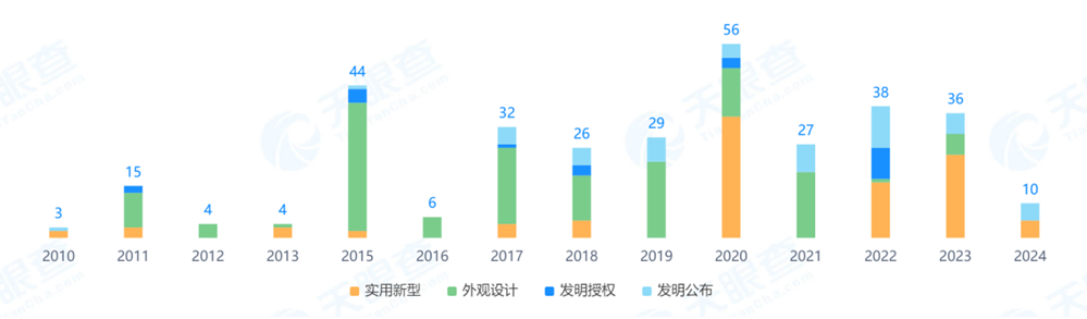 更值得警惕的是,养元饮品管理层在新品研发上的投入呈现显著不足。2024年,公司研发费用仅4404万元,同比下降17%,占总营收比重低至0.7%。管理层将这一变化归因于研发项目的缩减。天眼查数据显示,2024年养元饮品新增专利仅10项,较2023年的32项大幅减少。从专利内容看,仍主要围绕核桃乳生产工艺展开,缺乏对新产品、新技术的探索与突破。