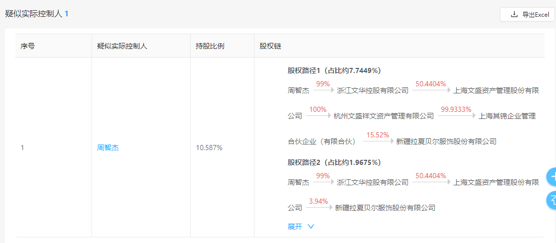 拉夏贝尔于2005年创建的数百家子公司和其他占股企业大多已经注销,该集团的实际控制人疑似周智杰,通过99%控股浙江文化控股有限公司等多家企业,并让这些公司占股拉夏贝尔。