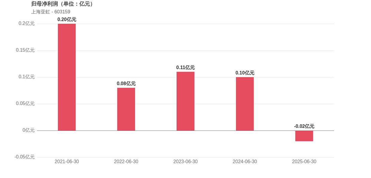 在2025年上半年,上海亚虹的经营业绩承受较大压力,实现营业收入2.03亿元,同比下滑13.05%,归母净利润出现亏损0.02亿元,同比下滑118.64%。