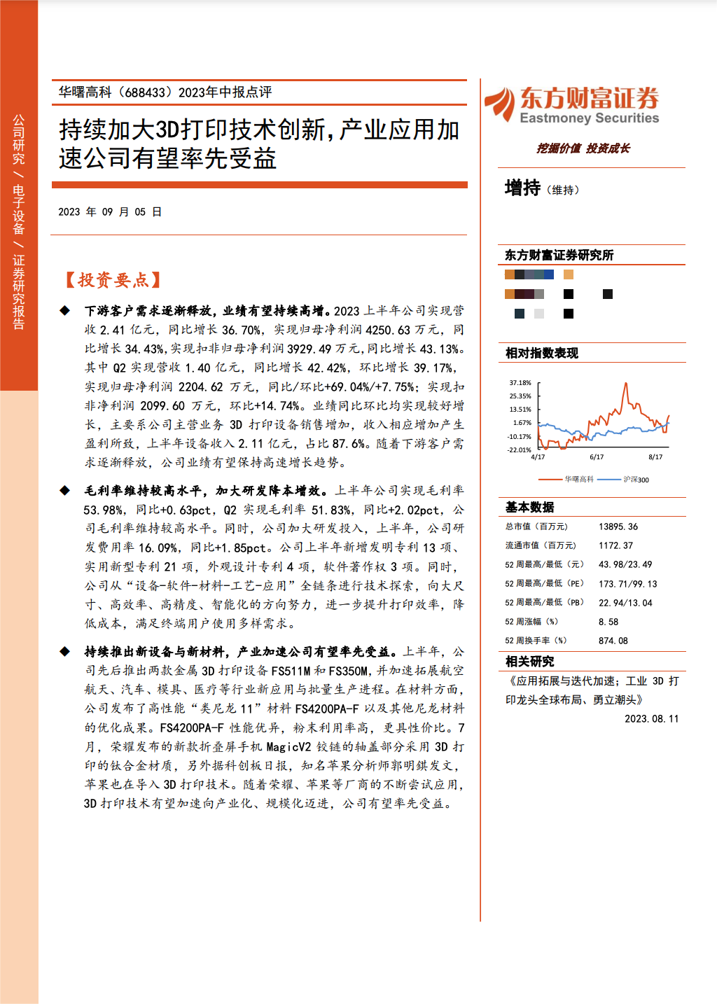 答:公司是一家具有综合解决方案能力的公司,十余年来专注于工业级增材制造设备的研发、生产与销售,并提供3D打印材料、工艺及服务,建立了涵盖,“设备-软件-材料-工艺-应用”全链条一体化自主技术体系,搭建了自主高分子3D打印材料生产线,形成相关技术自主知识产权。且公司秉承开放理念,便于下游客户了解3D打印行业,公司了解下游行业亟需解决的痛点来判断是否可以采用3D打印技术来解决,根据具体应用场景为客户量身打造最具性价比的解决方案,与客户一起攻克行业痛点,进而实现双赢。