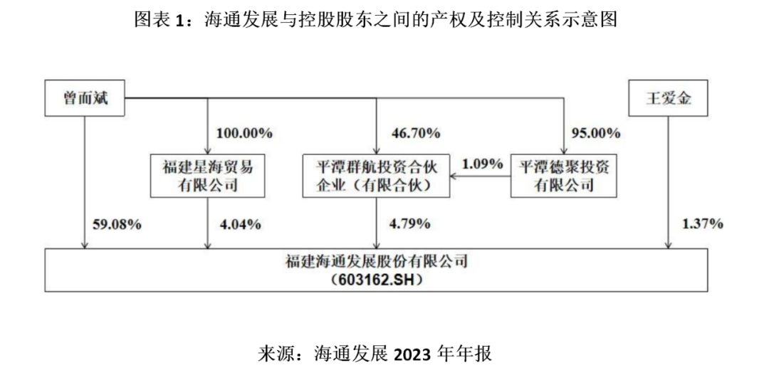 年报显示,截至2023年末,实控人曾而斌直接持有海通发展59.08%的股份。
