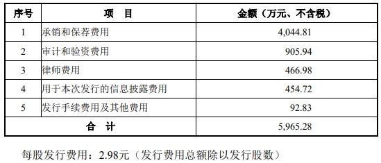 圣晖集成本次发行费用总额为5,965.28万元,其中东吴证券股份有限公司获得承销和保荐费用4,044.81万元。
