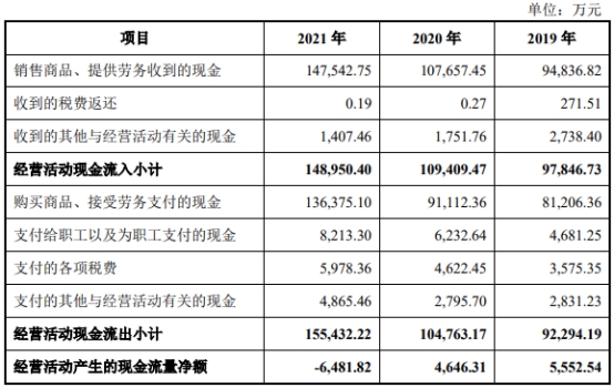 2019年-2022年,圣晖集成营业收入分别为93,442.31万元、109,642.98万元、170,233.44万元,销售商品、提供劳务收到的现金分别为94,836.82万元、107,657.45万元、147,542.75万元;净利润分别为7,334.72万元、8,160.54万元、12,432.62万元,经营活动产生的现金流量净额分别为5,552.54万元、4,646.31万元、-6,481.82万元。