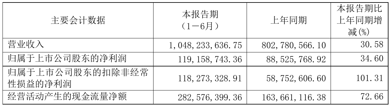 8月18日,福达股份(603166)近日发布2021年半年度报告,报告期内营业收入1,048,233,636.75元,同比增加30.58%;净利119,158,743.36元,同比净利增加34.60%。