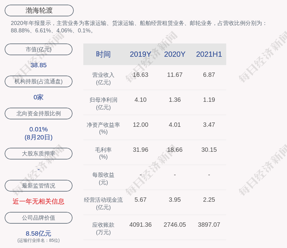 2.近30日内无机构对渤海轮渡进行调研;