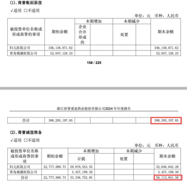 这已是莎普爱思第三次高溢价收购实控人旗下医院资产。前两次收购的泰州妇女儿童医院、青岛视康眼科医院,均在业绩对赌期结束后迅速“变脸”,商誉接连爆雷,直接导致公司2024、2025年连续两年亏损扩大。