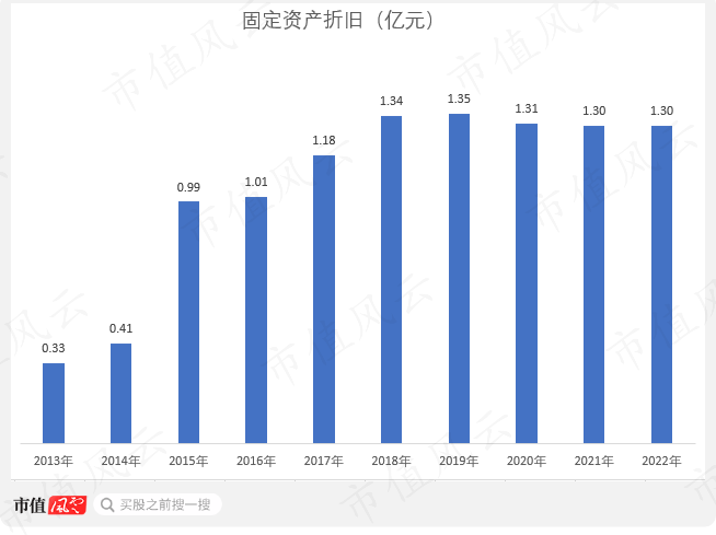 2015年,折旧费用约1亿,同比上涨142.2%。