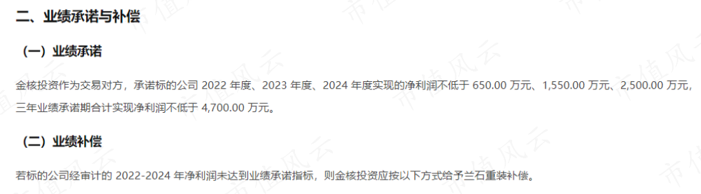 收购之时,中核嘉华原控股股东与公司签订了业绩承诺,2022-2024年度实现的净利润分别不低于650万、1,550万、2,500万,合计不低于4,700万元。