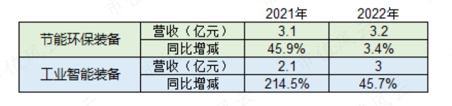 不过2022年增速放缓,工业智能装备营收上升45.7%,节能环保装备仅上升3.4%。