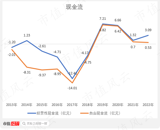 受到新能源业务的带动,公司的扣非净利润也在2021年扭亏为盈,2022年进一步上升,为1.3亿。