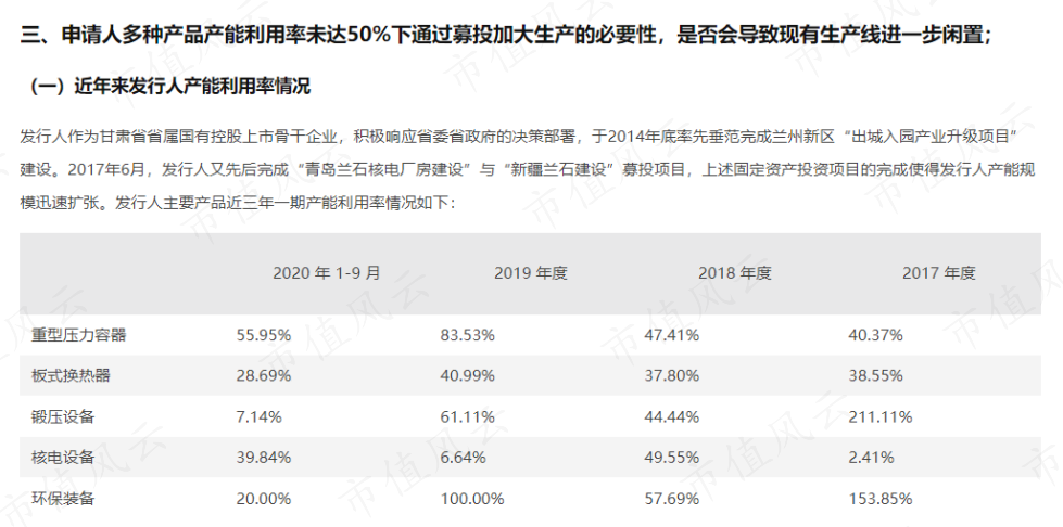 2017-2020年,多个产品对应的产能利用率未达50%。