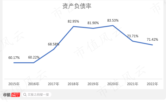 公司资产负债率上升明显,2018年高达83%,同期财务费用2.5亿,较2013年翻了6倍。