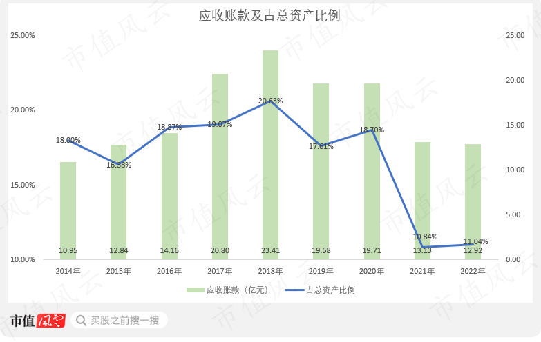 可以看到,上市后公司的应收账款金额及占总资产比例,均呈现上升趋势,并于2018年达到峰值。