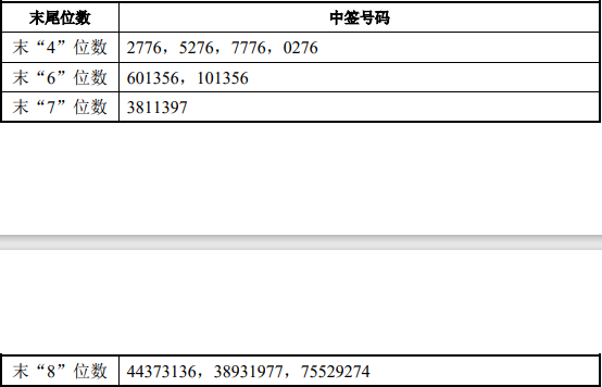 宝立食品7月7日公告,本次公司IPO网上中签号共有3.6万个,每个中签号码只能认购1000股宝立食品A股股票。具体中签情况如下图所示: