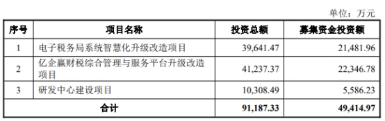 税友股份于2021年6月30日在上交所主板上市,发行数量为4,059.00万股,发行价格为13.33元/股,保荐机构(主承销商)为国金证券股份有限公司,保荐代表人为钱进、朱铭,募集资金总额为54,106.47万元,募集资金净额为49,414.97万元。公司2021年6月17日发布的招股书显示,公司募集资金用于电子税务局系统智慧化升级改造项目、亿企赢财税综合管理与服务平台升级改造项目、研发中心建设项目。