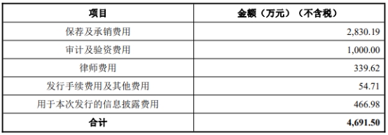 税友股份2021年首次公开发行的发行费用合计4,691.50万元(不含增值税),其中,保荐及承销费用2,830.19万元。