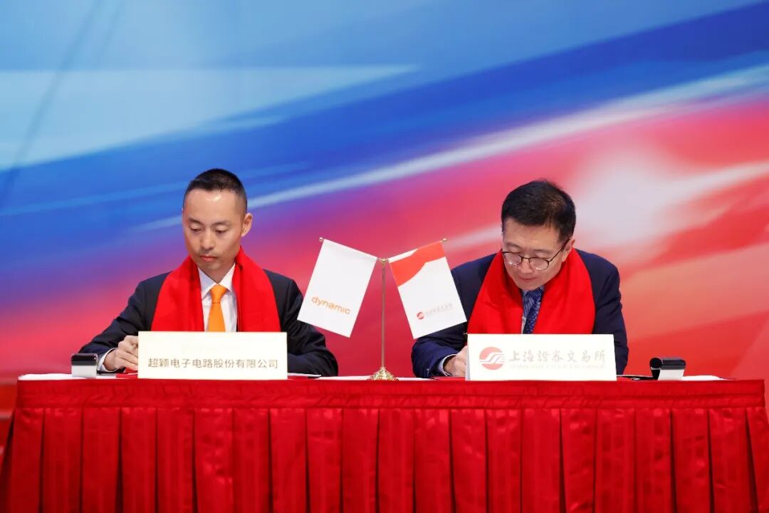 致辞环节后,上交所数字化专业委员会副主任兼技术公司董事长张晓京与黄铭宏签订《证券上市协议》。据上交所现场宣布,超颖电子是今年沪市主板上市的第19家公司,使上交所上市公司总数达到2289家。