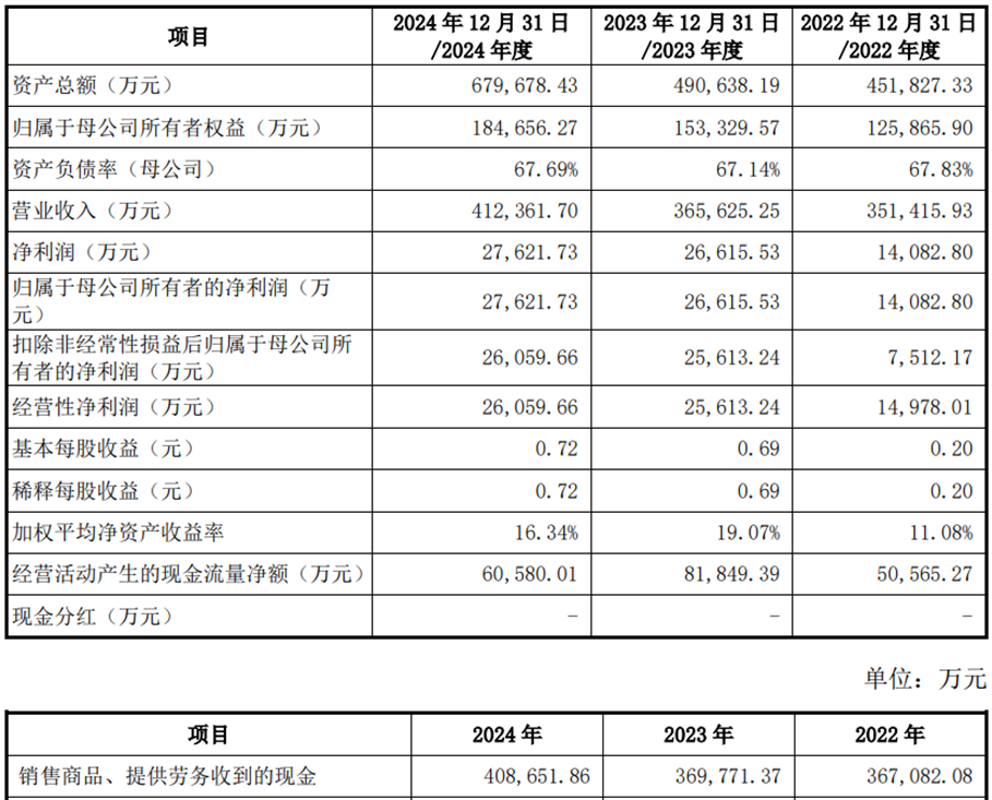 2022年至2024年,超颖电子的营业收入分别为351,415.93万元、365,625.25万元和412,361.70万元;净利润/归属于母公司所有者的净利润分别为14,082.80万元、26,615.53万元和27,621.73万元;扣除非经常性损益后归属于母公司所有者的净利润分别为7,512.17万元、25,613.24万元和26,059.66万元。