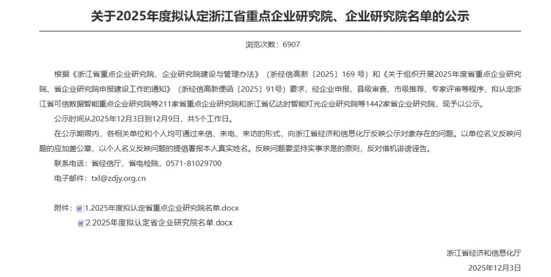近日,浙江省经济和信息化厅正式公示2025年度浙江省重点企业研究院拟认定名单,浙江 德创环保 科技股份有限公司“烟气多污染控制技术重点企业研究院”凭借扎实的研发实力与突出的技术优势成功入选,这一荣誉标志着 德创环保 在烟气治理领域研发团队建设、研发体系打造和科技创新实力,再次获得省级权威认可。