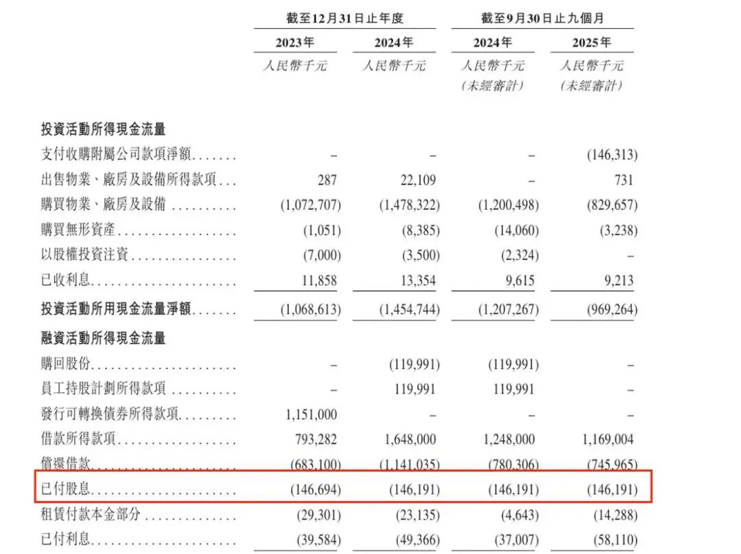 除偿还借款外,新泉股份融资现金流最主要的流出项为支付股息。2022年及2024年度,新泉股份各期宣派股息均为1.46亿元,并于次年5月或6月实施分派。