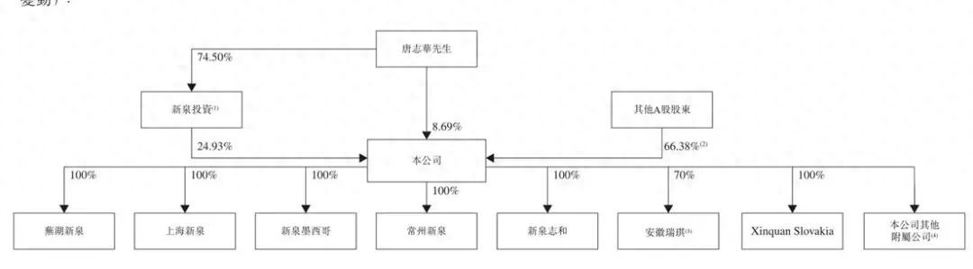 截止递表港交所,新泉股份由新泉投资持有24.93%,唐志华持有8.69%。