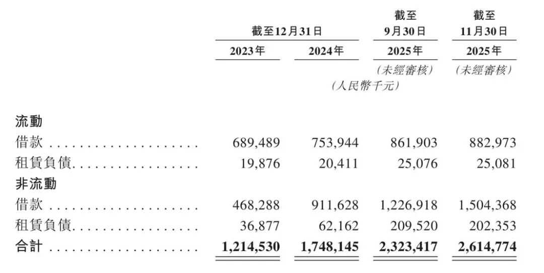 2023年-2025年9月末,新泉股份的借款分别为11.58亿元、16.66亿元、20.89亿元,至2025年11月末进一步23.87亿元。