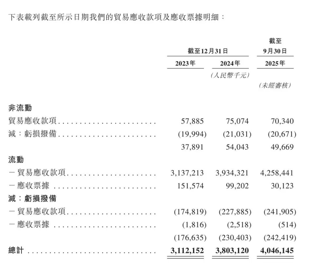 2023年末及2024年末,新泉股份的贸易应收款分别为31.95亿元及40.09亿元,占比期内收入的30.29%及30.38%。