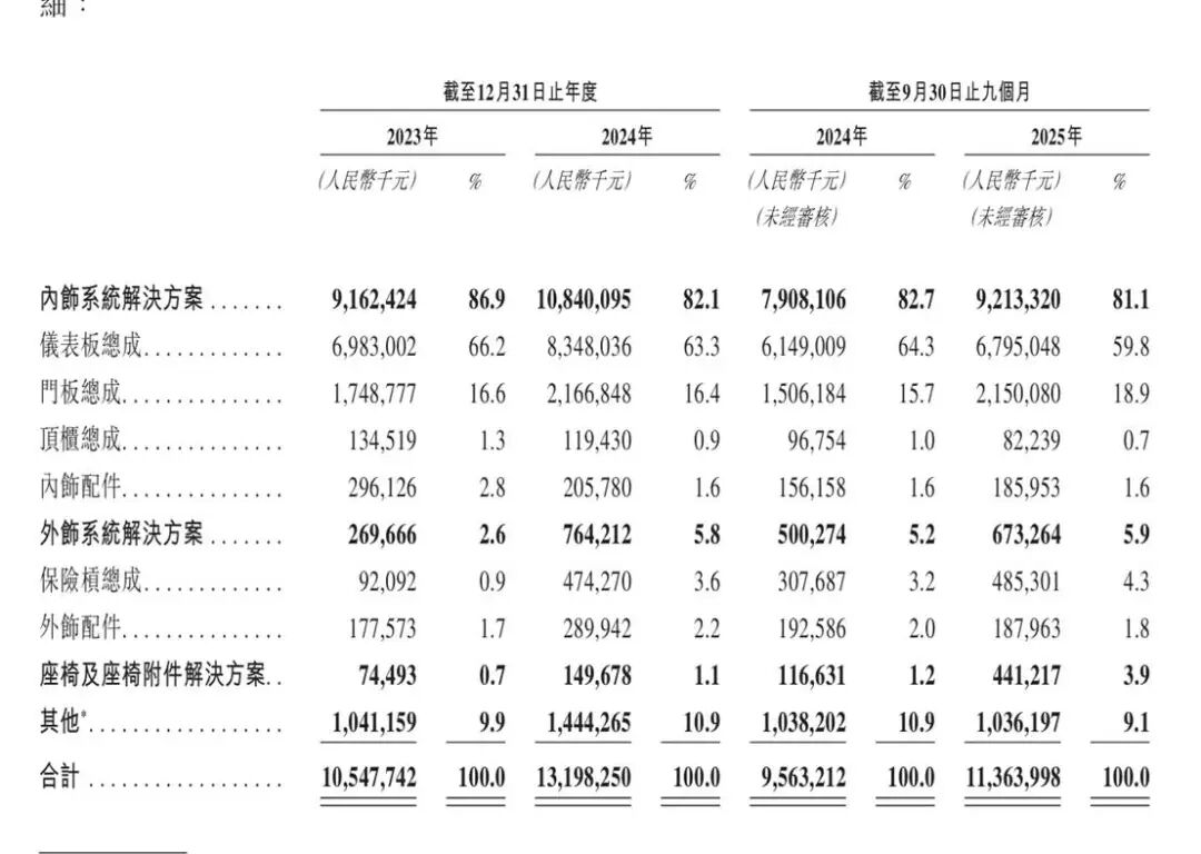 座椅及座椅附件解決方案的毛利率则波动较大,2023年及2024年分别为18.6%、21.9%,2025年前9个月为18.4%,同比下滑6.9个百分点。