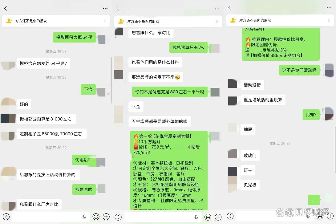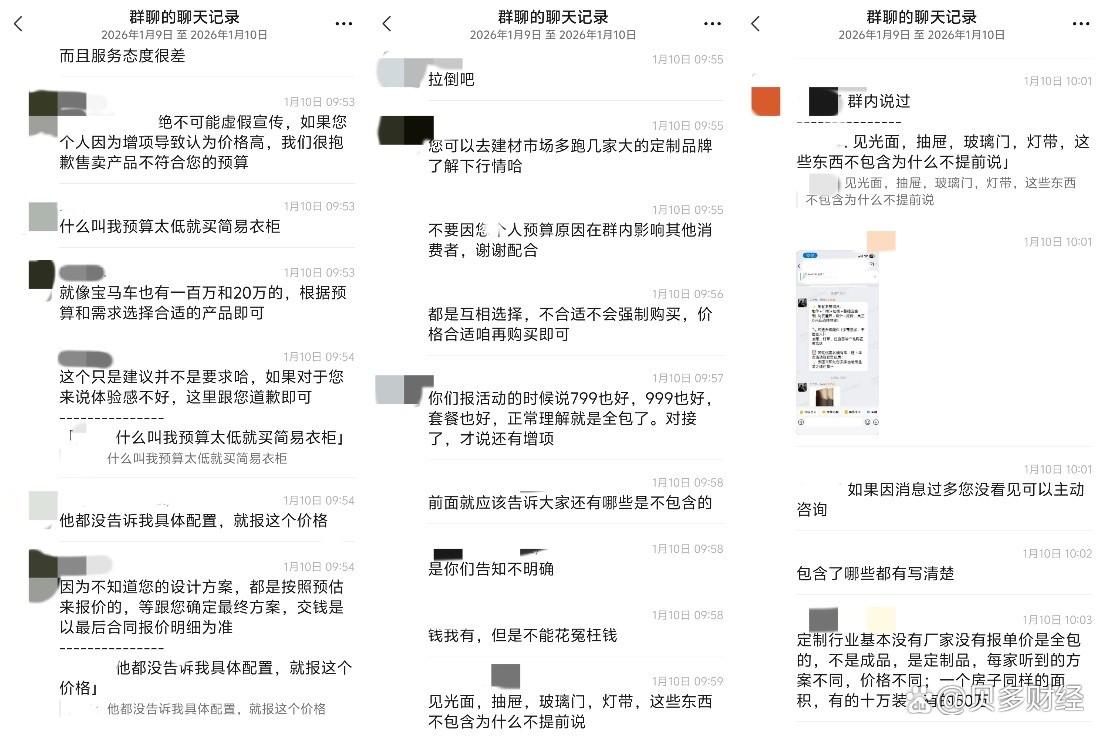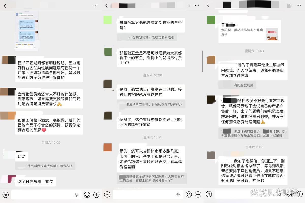 结束这两段不愉快的对话后,当事人将遭遇分享至团购社群内,直指平台存在虚假宣传嫌疑,且金牌家居销售服务态度消极傲慢,不少用户也认为上述销售人员的做法十分不妥,无论预算高低,每位用户都应享有平等的定制服务选择权。