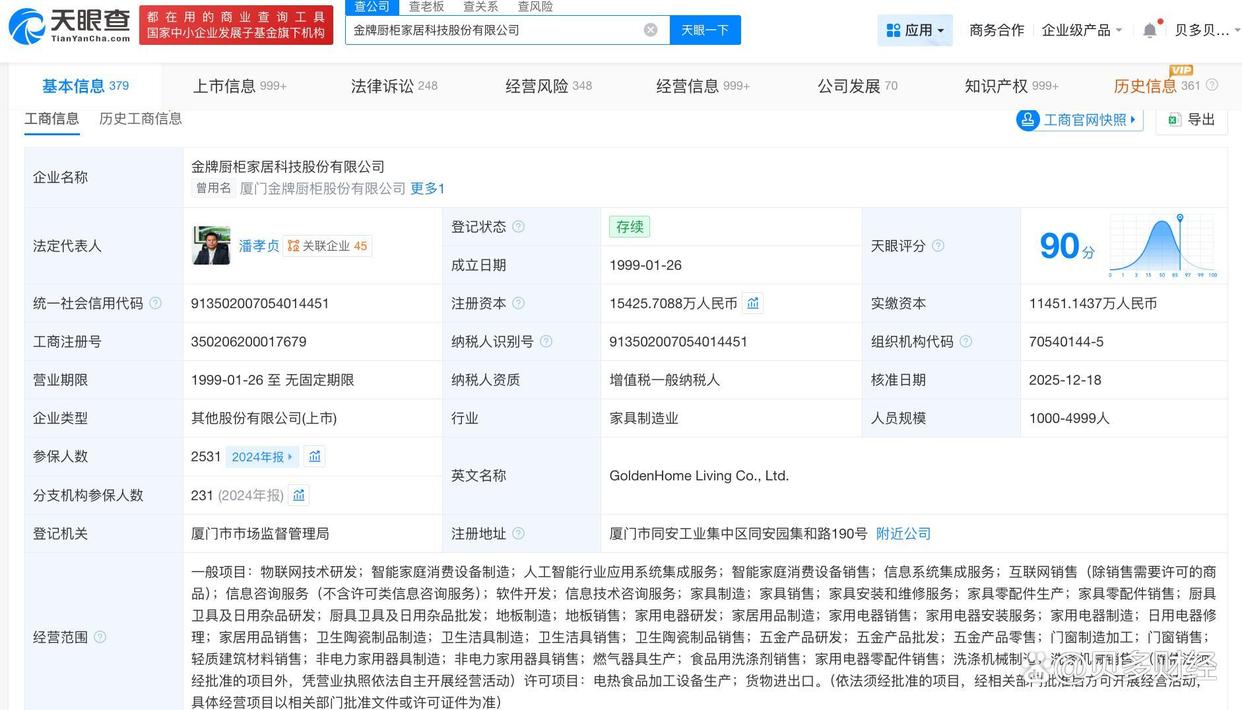 特别说明的是,前述销售人员均属于金牌家居。天眼查App信息显示,该公司的全称为金牌厨柜家居科技股份有限公司,于2017年5月12日在上海证券交易所上市,代码为“603180”,主要产品为橱柜、衣柜等。