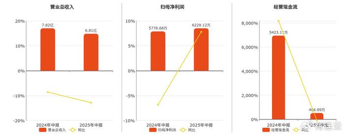 公司营业总收入为6.81亿元,较去年同报告期营业总收入减少1.01亿元,同比较去年同期下降12.86%。归母净利润为6229.12万元。经营活动现金净流入为406.09万元,较去年同报告期经营活动现金净流入减少5017.02万元,同比较去年同期下降92.51%。