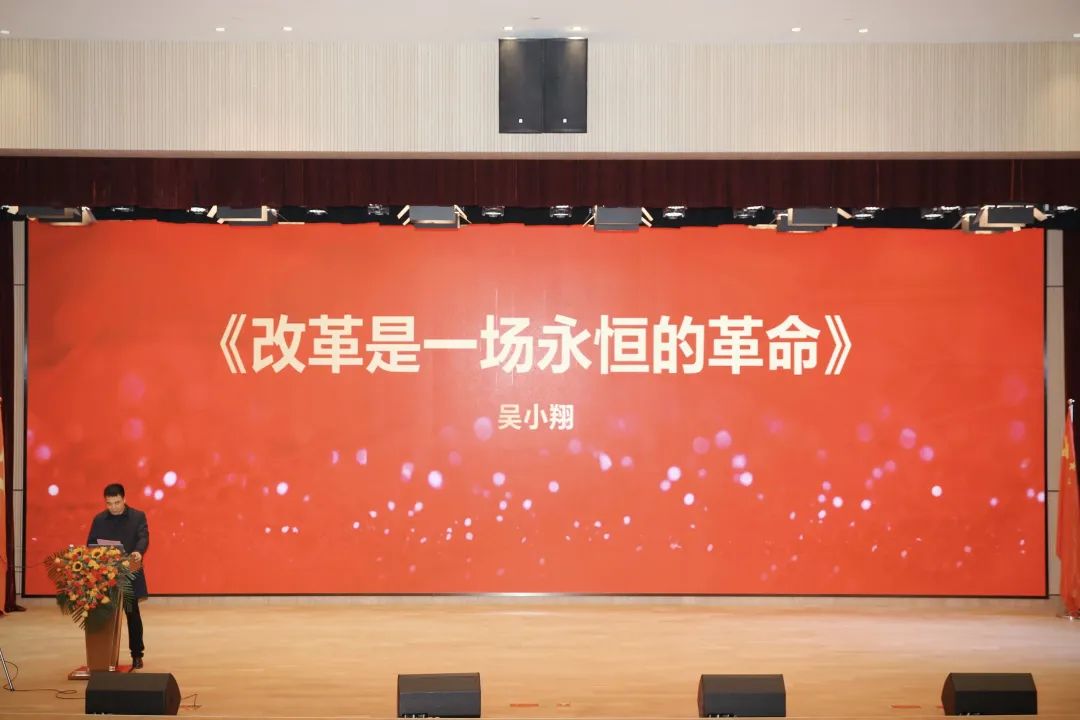 奋斗成就梦想,实干才能兴业!各位同事!我们要发挥“敢为、敢闯、敢干、敢首创”的四敢精神,"四敢“精神,就是做个勇敢者,改革是一场永恒的革命,我们要推动集团深化改革工作向纵深开展,在更大的赛场上主动破局,果断开局,助推集团实现高质量发展,推动集团发展再上新台阶。