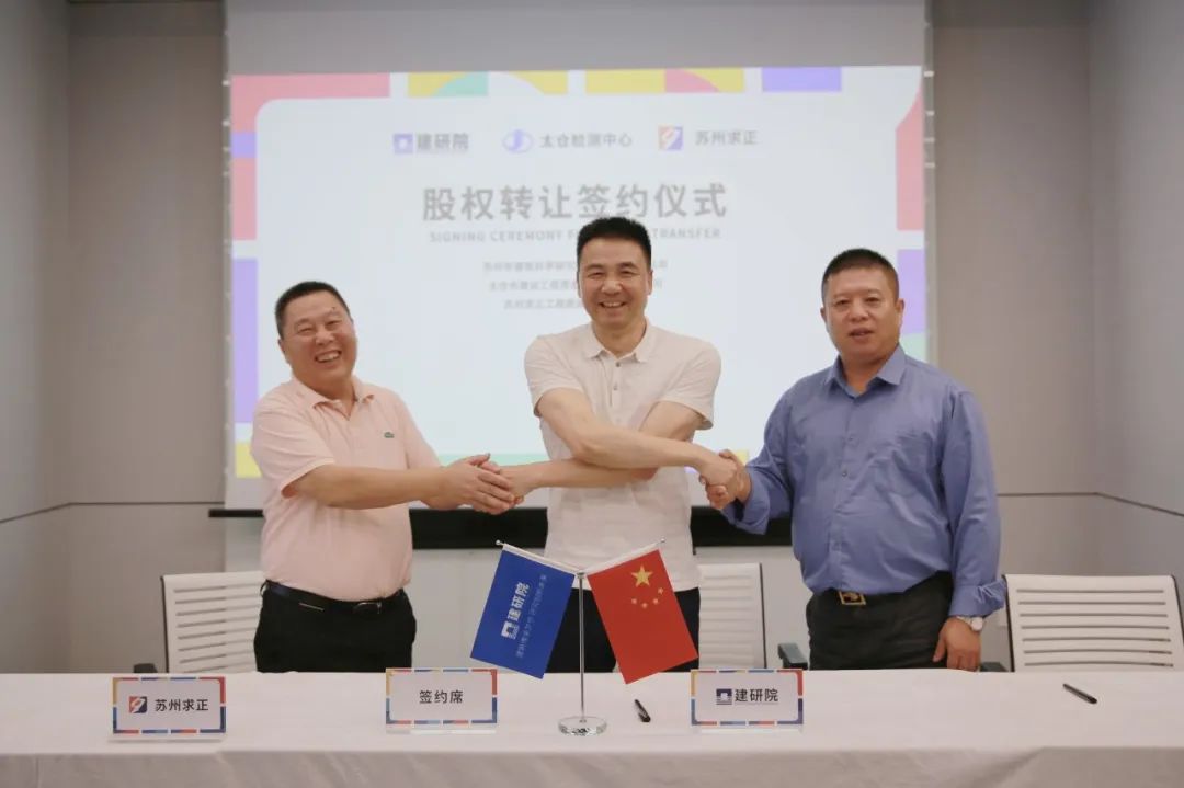 在三方的共同见证下,建研院受让张启元、李洪青持有的苏州求正55%股权,建研院将持有的控股子公司太仓检测中心10%股权转让给张启元、李洪青;协议签订后,苏州求正正式成为建研院旗下控股子公司,建研院仍为太仓检测中心的控股股东。