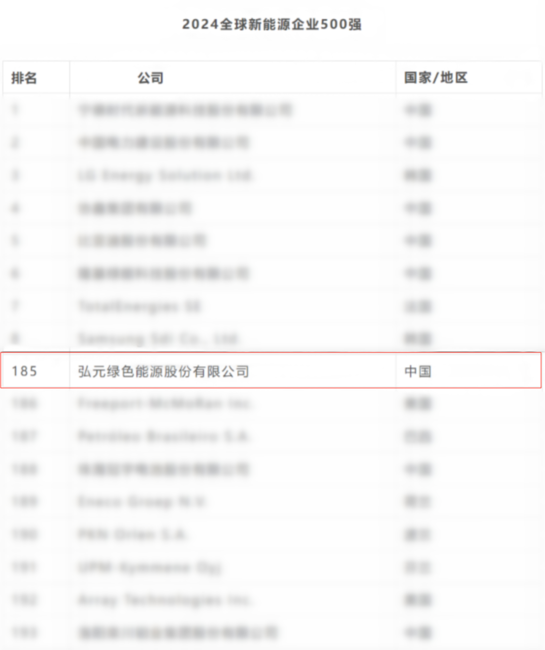 9月10日, 2024新能源与电力市场创新发展大会暨第十四届全球新能源企业500强峰会在山西太原举行。峰会期间,备受关注的“2024全球新能源企业500强榜单”正式发布,弘元绿能凭借卓越的品牌实力成功入围,位列榜单第185位!