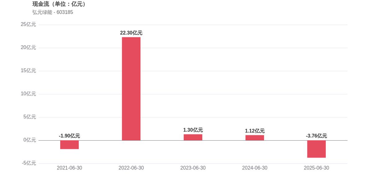 在经营稳健性方面,弘元绿能面临存货周转效率下降的压力,存货周转天数增长3.43%至91.37天,表明库存管理能力有所弱化。经营活动产生的现金流净额为-3.76亿元,相比2024年同期1.12亿元由正转负,显示出公司经营性现金流承压。此外,2025年上半年的资产负债率为56.37%,同比下降1.31个百分点,这意味着公司债务负担有所减轻。