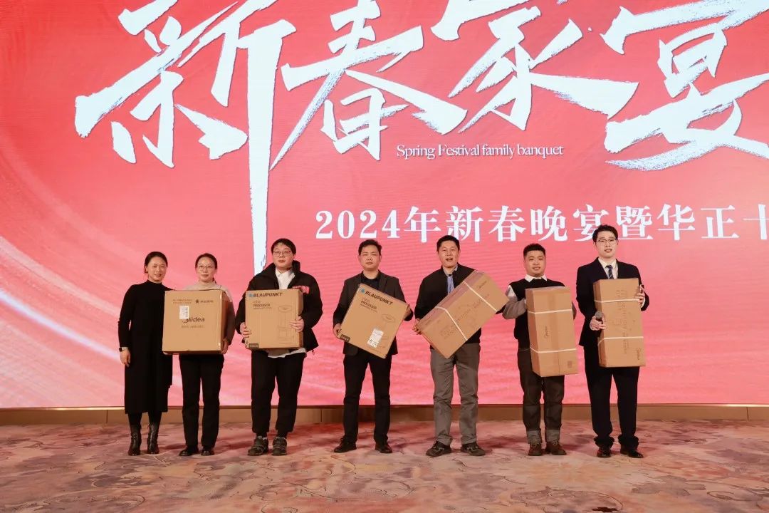 晚宴现场,华正还准备了丰富的惊喜礼品,进行了气氛热烈而有序的抽奖环节,将好运与祝福送给在场的每一位家人。