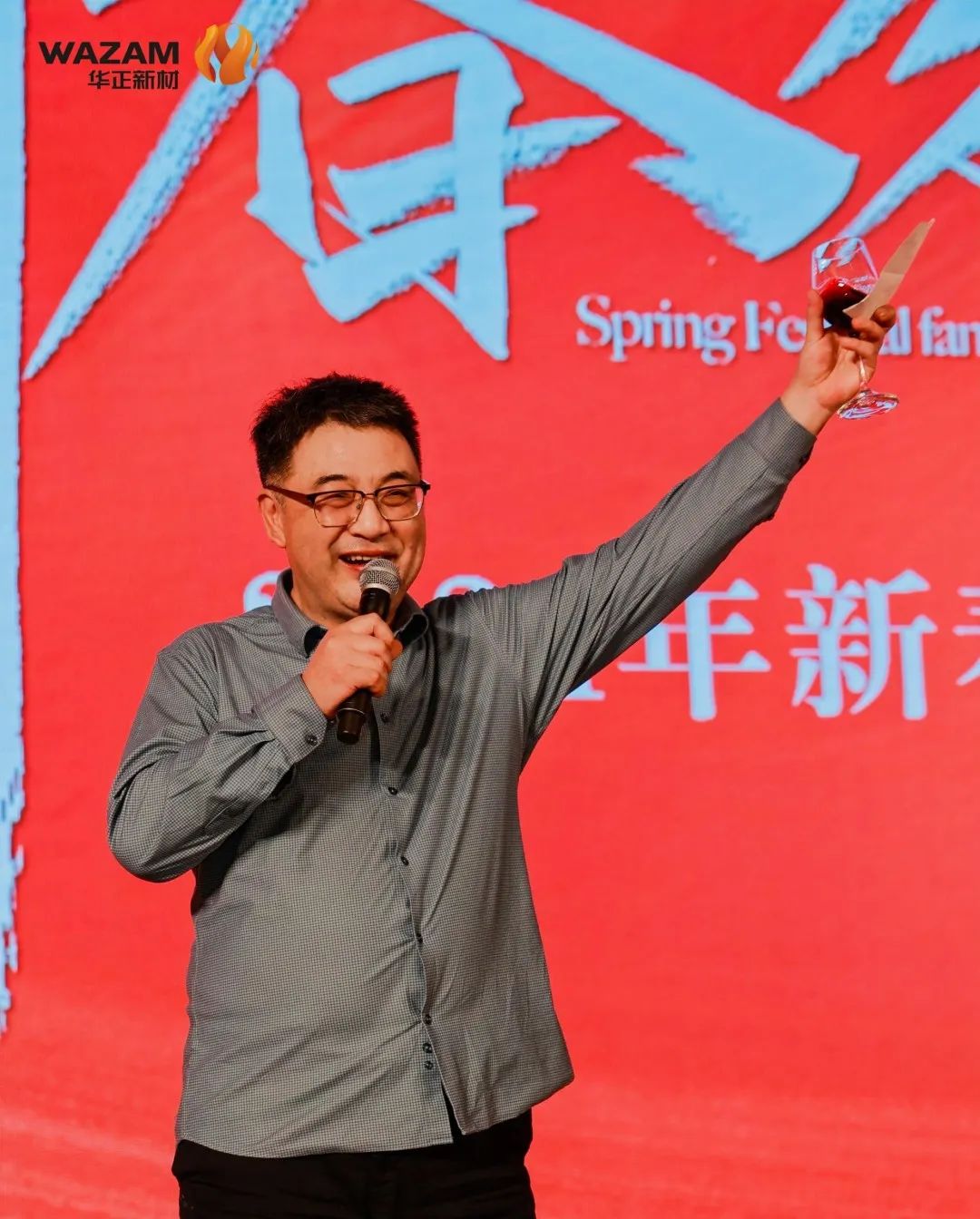 随后华正新材董事长刘涛上台致祝酒辞,年会晚宴正式开始。