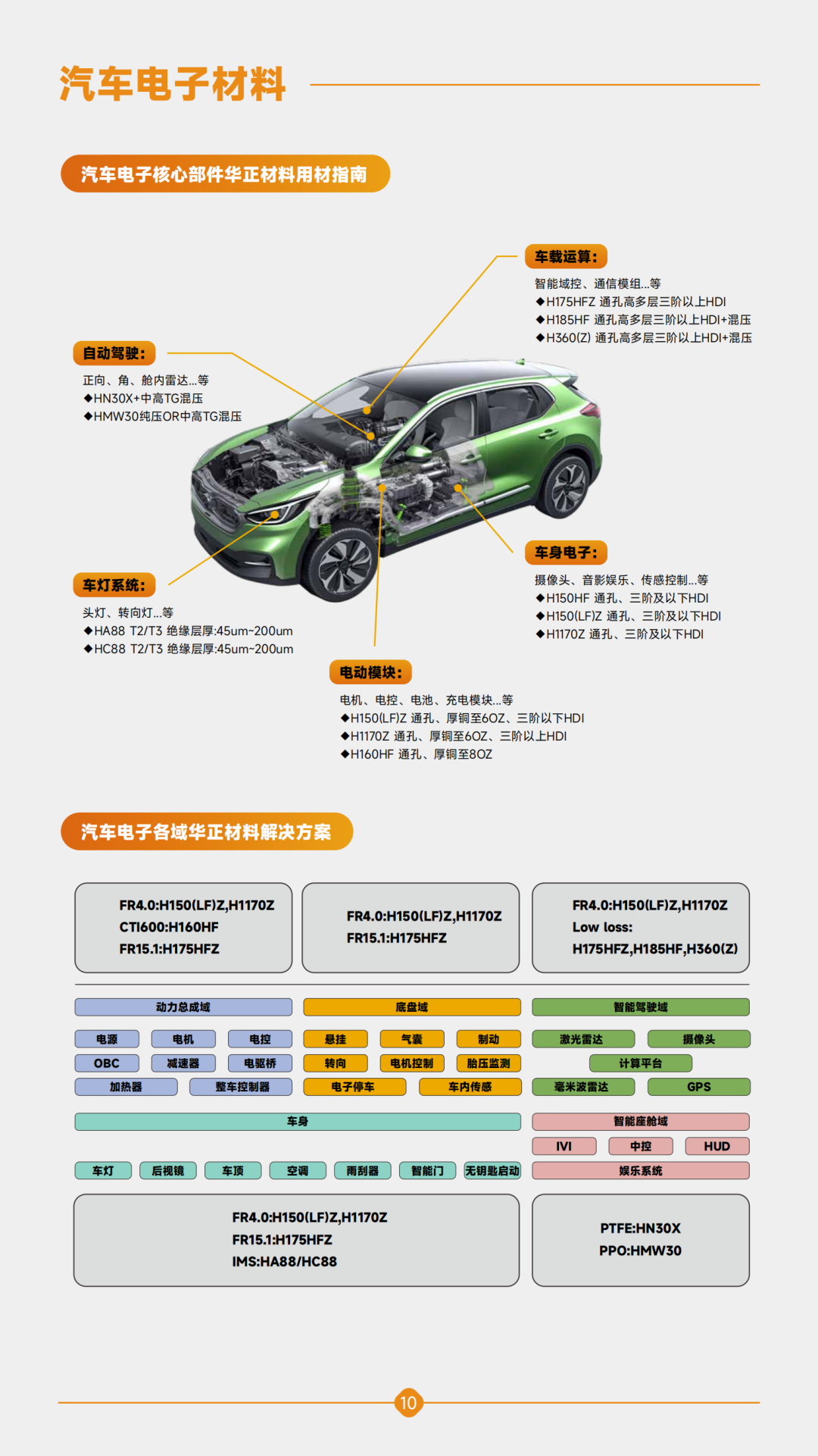 汽车电子材料:从材料配方、工艺制程到测试认证全链条突破,材料更趋高频高速化、散热高效化、环境耐受化、轻量化集成化,打造汽车电子用PCB一站式解决方案。