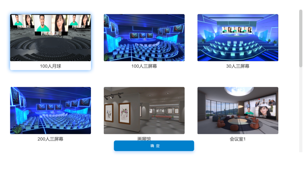 在会议能力支撑模块,系统支持对场景内的侧屏、主屏进行配置,并提供多样风格的场景以供使用。