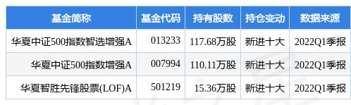 其中持有数量最多的基金为华夏中证500指数智选增强A,目前规模为24.27亿元,最新净值0.7497(4月27日),较上一交易日上涨4.17%。该基金现任基金经理为孙蒙。