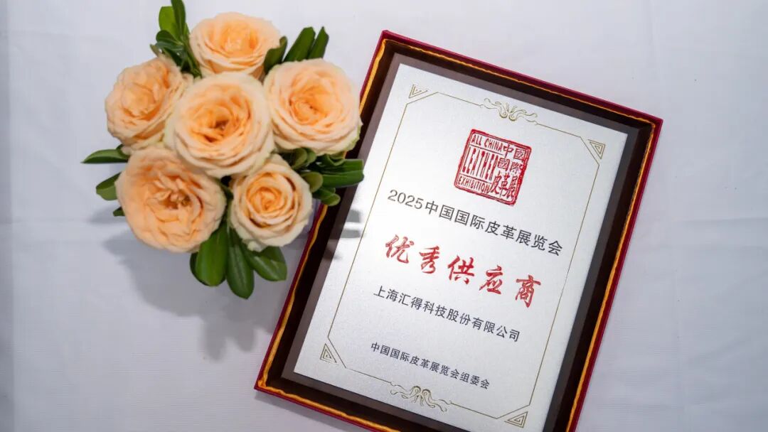 汇得科技凭借多年来在皮革化工领域的卓越表现和突出贡献,荣获“2025 年中国国际皮革展优秀供应商”称号。作为一家上市企业,汇得科技始终牢记使命,积极发挥引领作用,致力于为社会创造更大价值。