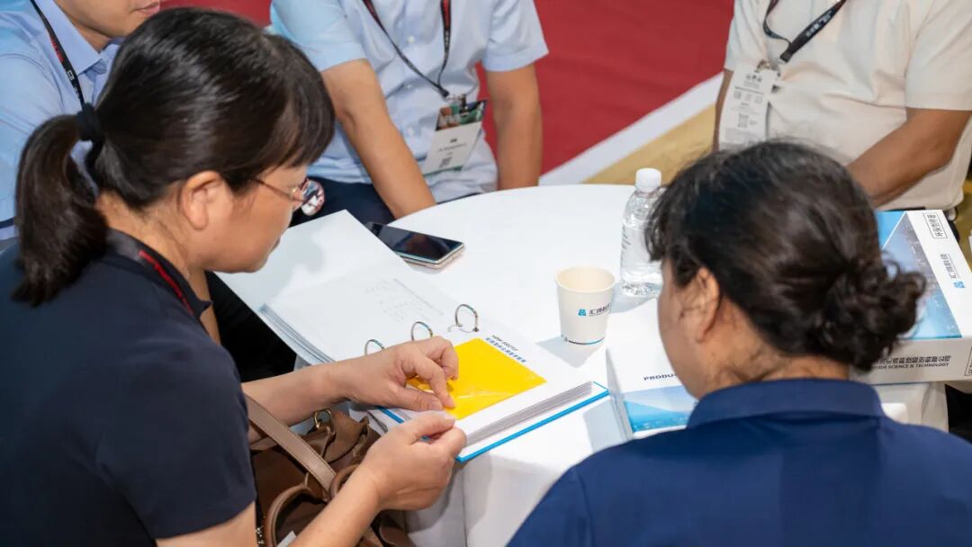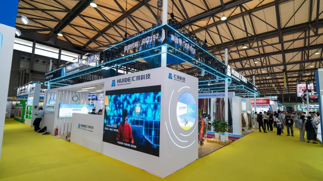 走进展会现场,汇得科技E4D9a展位以一抹清透的蓝白主调脱颖而出,简洁大气的工业美学风格与行业“绿色转型”主题不谋而合。